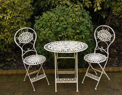 Fabulous French Style Ornate Cream Metal Garden Bistro Set Product Description